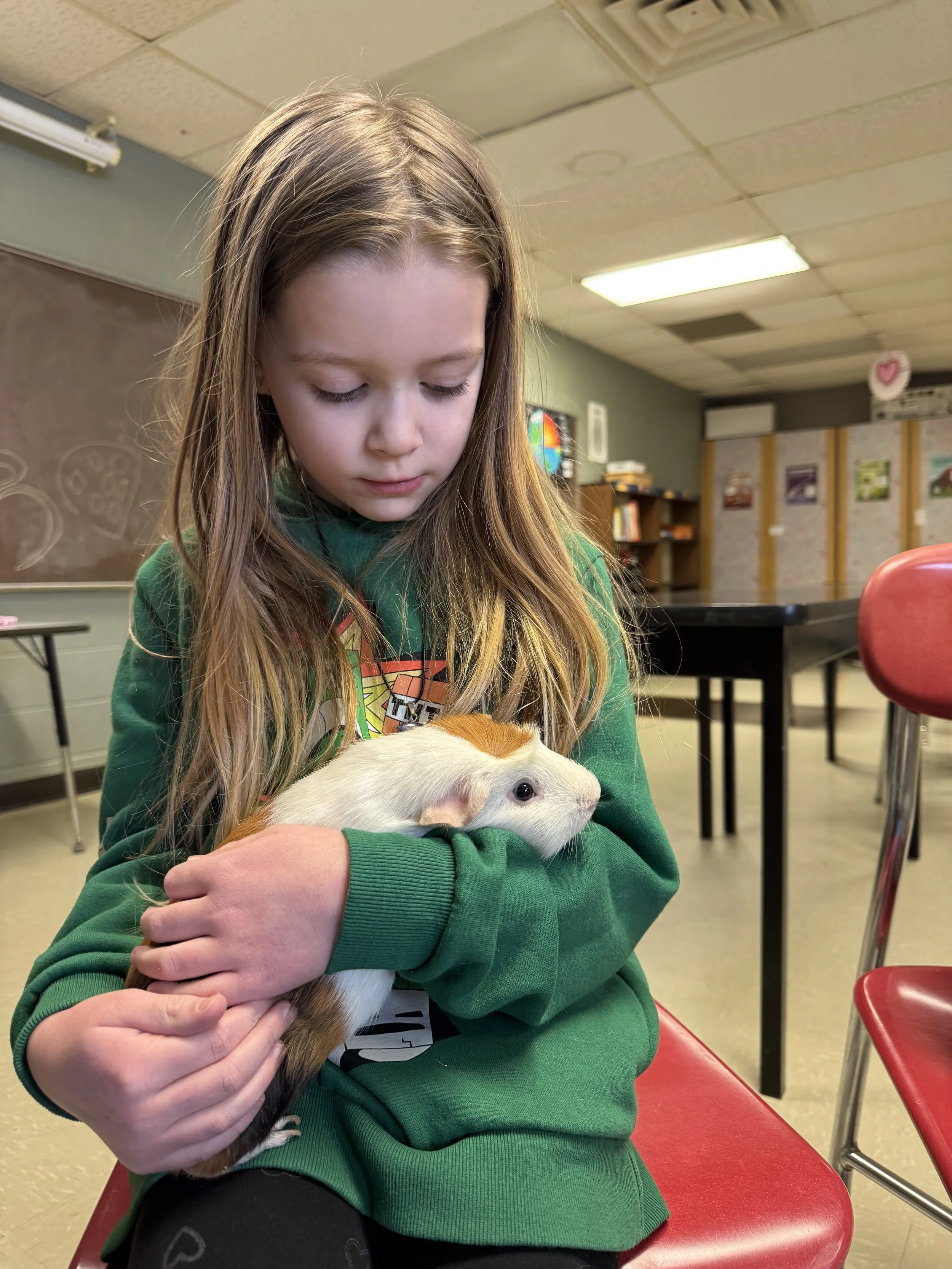 Small & Gentle Companions: Our rabbits and guinea pigs teach the art of gentleness. These smaller creatures are perfect for teaching quiet observation and the specific care requirements of mammals.